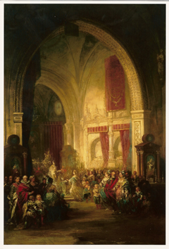 De la producción pictórica de Josep Galofré i Coma (1819-1877), teórico por excelencia del antiacademicismo, se puede entresacar su cuadro La coronación de Alfonso V en Nápoles (1846).