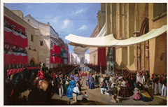 De la obra de Manuel Cabral y Aguado Bejarano (1827-1891), hijo del también pintor Antonio Cabral, destaca La procesión del Corpus en Sevilla (1857, Museo del Prado-Casón), donde muestra algunos rasgos más sobresaliente de su estilo, como su amor por el detalle y cierta tendencia al uso convencional de los colores.
