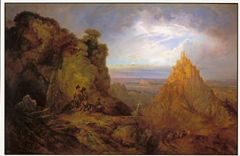 Como es sabido, el paisaje, es entendido en el pensamiento romántico como una extensión del alma del artista, cargado de emociones desbordadas, que tienen su reflejo en la representación de mares embravecidos y tormentas, o bien de abismos y crepúsculos, que evocan la soledad del hombre en la inmensidad de la creación. El paisaje, además, es observado como algo histórico, mudable, de ahí la incorporación de ruinas de castillos o de templos góticos, pero también, en su vertiente más serena, de la intervención del hombre en su conformación, dando lugar a la representación de paisajes rurales idealizados, pero concretos, teñidos de color local a través de la integración de tipos populares, procesiones campesinas o bandidos, que dotaban a la obra de un naciente sentido regionalista.