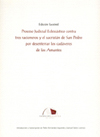Los Amantes de Teruel: lecturas para una pasión Año: 2004 Catálogo de exposición bibliografica que consta de unas 50 obras de temática amantista. Ampliar informacion Edición facsímil protocolo Yagüe de Salas Año: 2004 Edición facsímil del Acta del Protocolo del notario Yagüe de Salas correspondiente a 1619. Contiene la primera referencia a la tradición amantista. La reproducción facsímil está acompañada de su transcripción. Ampliar informacion Edición facsímil proceso judicial eclesiástico : proceso contra tres racioneros y el sacristán de San Pedro por desenterrar los cadáveres de los amantes. Año: 2004 Edición facsímil del Proceso Judicial Eclesiástico que se realiza contra tres racioneros y el sacristán de la Iglesia de San Pedro por desenterrar en el mes de abril de 1619 los cadáveres de los amantes sin tener permiso previo. A la edición facsímil se acompaña la transcripción de la misma y su traducción al castellano. Ampliar informacion
